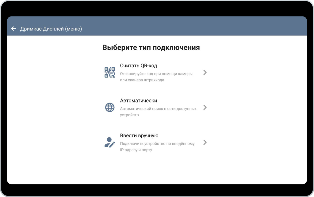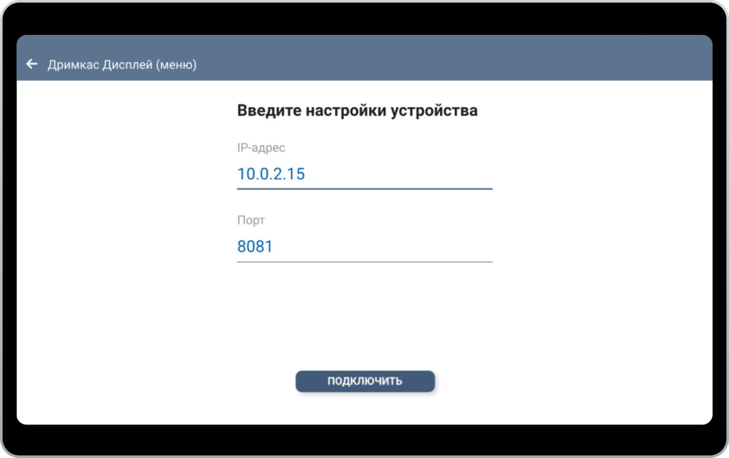 Дримкас дисплей можно подлючить к приложению Дримкас Дримкас Шаверма по Wi-Fi и Bluetooth. Для подключения по Wi-Fi устройства должны находиться в одной сети