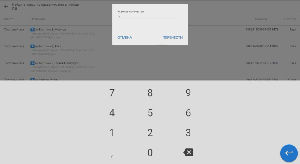 Введите количество, которое хотите перенести, и нажмите «Перенести»