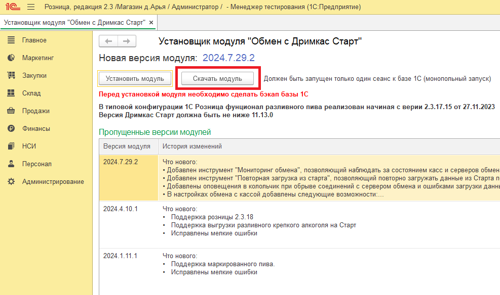 Скачайте модуль обмена, нажав на кнопку «Скачать модуль» и выберите директорию для сохранения файла на компьютере.