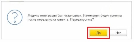 После успешной загрузки модуля будет выведено сообщение о необходимости перезагрузки клиента - Нажмите кнопку «Да»