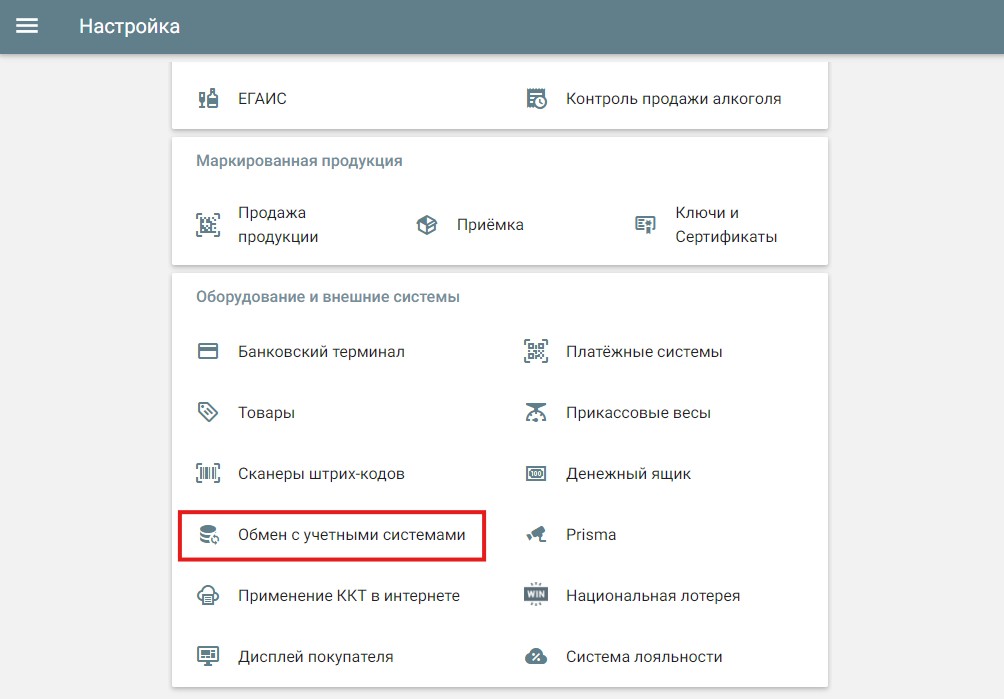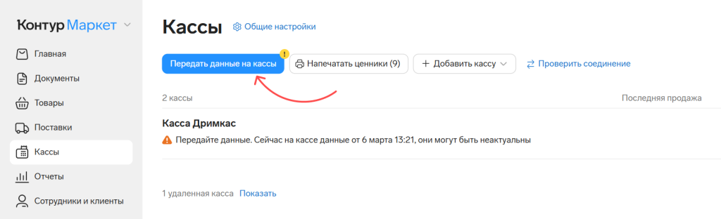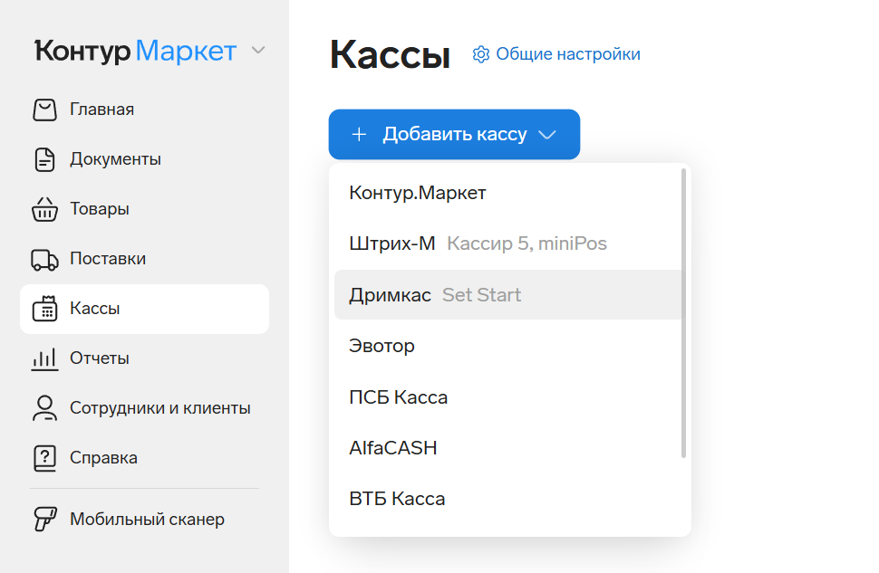 На Дримкас Старт и кассах Вики можно настроить обмен товарами и данными о продажах с товароучётной системой Контур.Маркет.