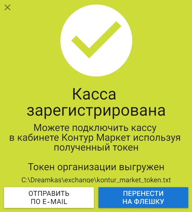 Нажмите первую кнопку, чтобы скопировать токен в буфер обмена. Этот способ доступен в Дримкас Старт. Нажмите вторую кнопку, чтобы открыть варианты сохранения токена: по электронной почте или на флешку.