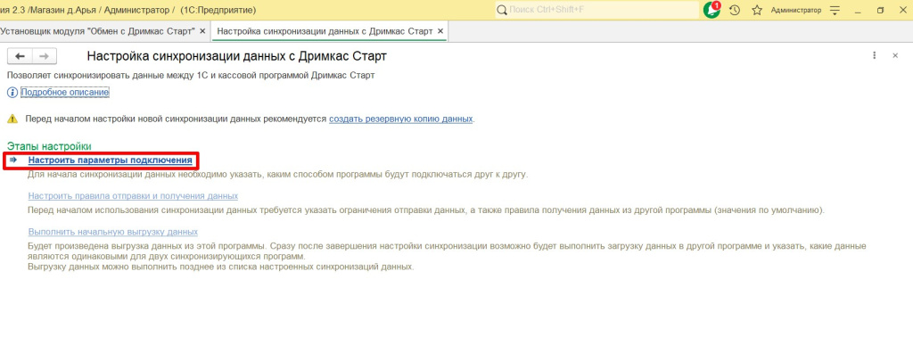 Настроить обмен 1С и Дримкас Старт