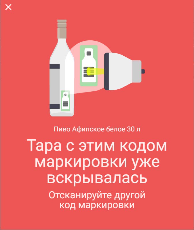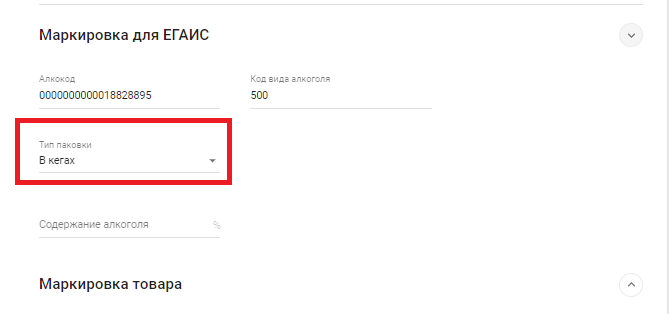 Если при вскрытии кега возникли проблемы с тем, что нет запроса кода маркировки, проверьте как заведен товар.