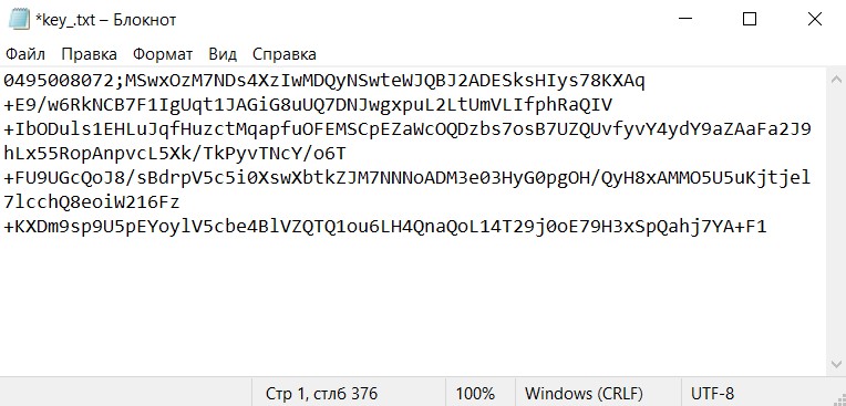 Создайте в блокноте файл «AKey» с разрешением «.txt» → Пропишите в нем заводской номер кассы и длинный ключ в формате «Заводской номер КТТ;Длинный ключ» → Сохраните файл.