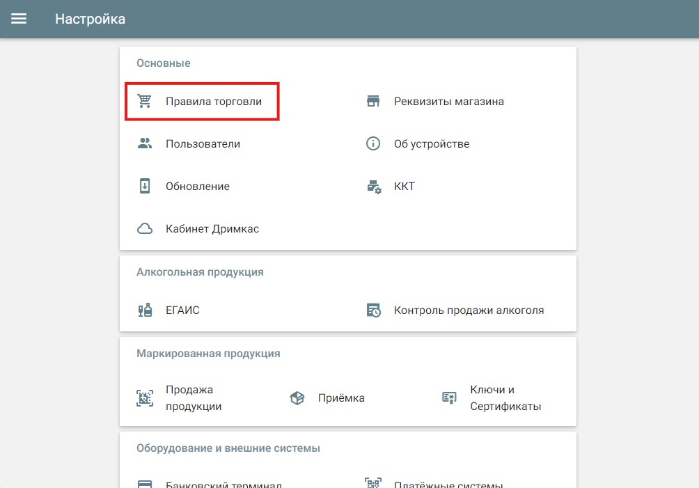 Настройка кассы