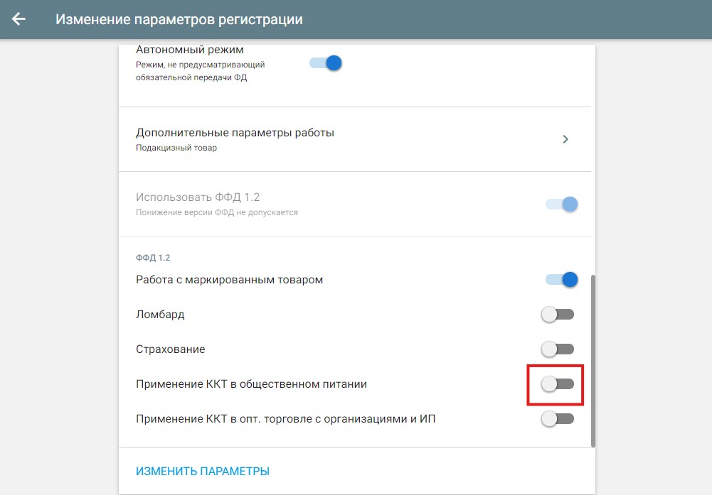 Включить режим общепита