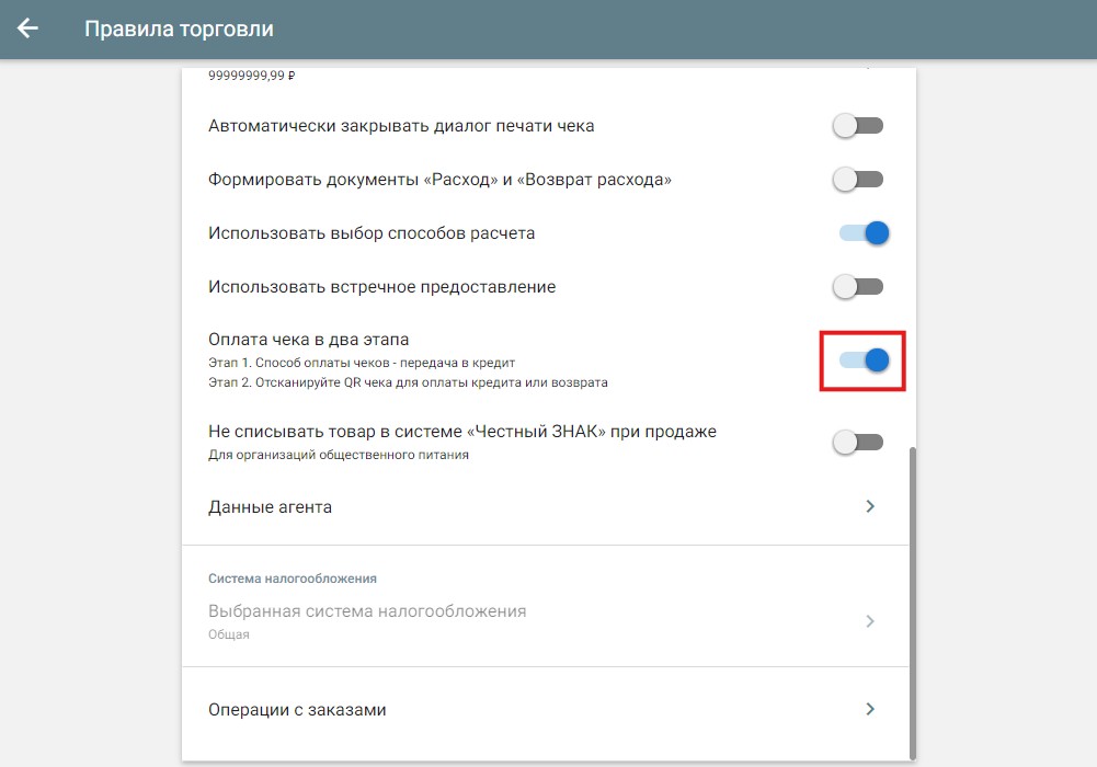 Включить оплату в два этапа