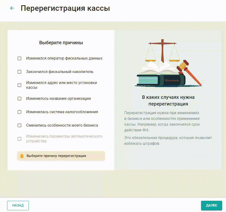 Перерегистрируйте кассу