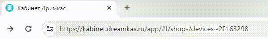 Переведите курсор в адресную строку, введите https://kabinet.dreamkas.ru/api/devices/id-кассы и нажмите «enter».