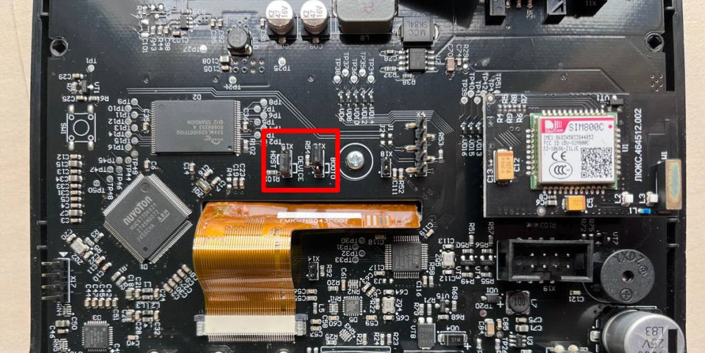 Подключите переходник к разъёму X10 на материнской плате. В некоторых устройствах разъём может быть занят GSM-модулем и потому не виден. Если у вас нет подходящего коннектора для изготовления переходника, можно аккуратно подпаяться на прямую к материнской плате соблюдая предоставленную распайку. Порядок подключения жил можно увидеть на следующей фотографии: