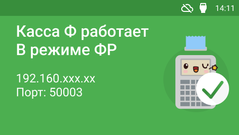 После перезагрузки касса включится в режиме ФР и выведет на экране IP-адрес и порт для дальнейшего подключения к ней