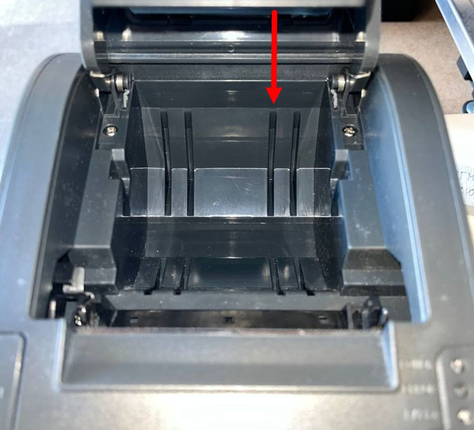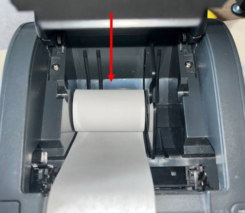 Затем поместите чековую ленту в левый отсек и закройте крышку Вики Принта.