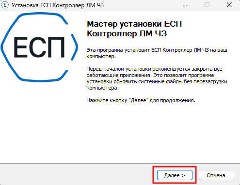 Запустите файл вида esm-lm-controller_<версия>-windows-setup.exe из дистрибутива ЕСП.